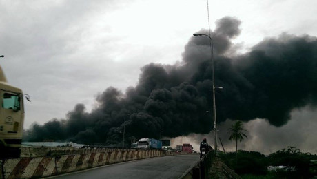 Trước đó, khoảng gần 14h chiều cùng ngày, lửa bốc lên ngùn ngụt tại Công ty Vạn Thành (xã Tân Phú Trung, huyện Củ Chi). Ngọn khói bốc cao hàng trăm mét, người dân đứng quan sát từ xa vẫn thấy.