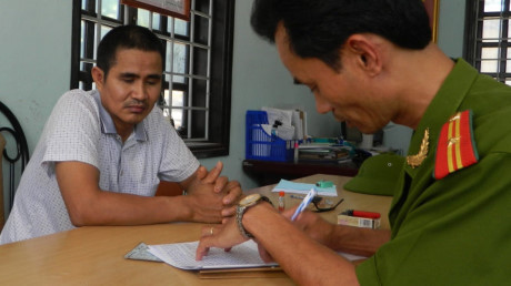 Nguyễn Văn Dậu tại cơ quan công an (Ảnh: Tuổi trẻ)