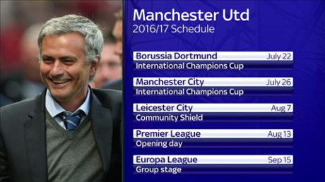 Sau 2 trận đấu giao hữu ngang tài ngang sức rất bổ ích kia, MU sẽ trở về đảo quốc sương mù để chuẩn bị cho trận tranh siêu cúp Anh Community Shield vào ngày 7/8, cơ hội để Mourinho giành danh hiệu đầu tiên ở Old Trafford. Với tư cách nhà ĐKVĐ FA Cup, Quỷ Đỏ trên thánh đường Wembley sẽ chạm trán Leicester City, tân vương Premier League vừa làm nên một mùa giải được đánh giá thần kỳ và vĩ đại nhất lịch sử bóng đá.