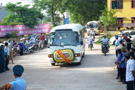 Ô tô đưa tro cốt đại tá Khải về nơi an nghỉ cuối cùng
