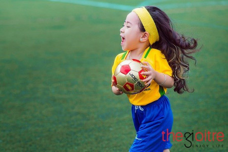 Sở hữu gương mặt bầu bĩnh, ánh mắt hồn nhiên trong trang phục cầu thủ, bé San San đã khiến đông đảo cư dân mạng “chết mê chết mệt”.
