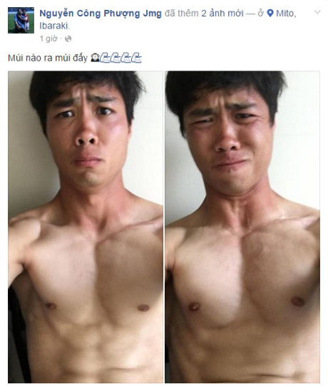 Sau buổi tập cùng với CLB Mito Hollyhock, tiền đạo Nguyễn Công Phượng đã nhắn nhủ đến người hâm mộ rằng anh đã khỏe mạnh khoe luôn cơ bụng 6 mũi trên trang mạng xã hội cá nhân. Nhiều fan tỏ ra thích thú với tấm hình khoe cơ bụng của Công Phượng và họ còn ví von tiền đạo này có thân hình giống Ronaldo, siêu sao đang khoác áo CLB Real Madrid.