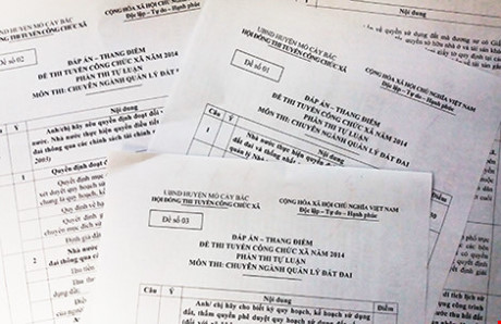 Phần đáp án đề thi công chức xã được cho là bị mua bán trước khi kỳ thi diễn ra. Ảnh: HTD