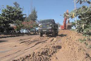 Xe ben, xe múc đất được huy động để khắc phục sự cố - Ảnh: Báo Bình Thuận