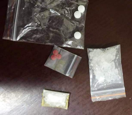 Qua kiểm tra, tổ công tác phát hiện 2 túi nilon nhỏ chứa tinh thể trắng nghi là ma túy đá và 1 túi nilon chứa 3 viên thuốc màu trắng đục, 1 túi nilon chứa 3 viên thuốc màu đỏ hồng nghi là ma túy tổng hợp.
