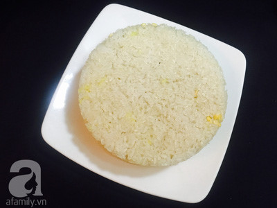 Cho sôi vào khuôn tròn ép chặt rồi đổ ra đĩa
