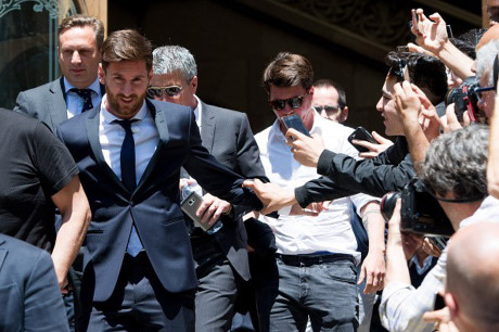 10h15 phút ngày 2/6 (giờ địa phương), cha con Messi xuất hiện ở tòa án Barcelona. Tiếp đón Messi ngoài cảnh sát còn có hơn 200 nhà báo và đám đông những người yêu quý và cả anti ngôi sao người Argentina. Thỉnh thoảng, những tiếng hô "cố lên Messi!" xuất hiện, xen lẫn với đó là tiếng hét "trả tiền đi!" đến từ các anti-fan.