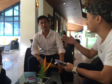 HLV Hữu Thắng trả lời phóng viên Singapore trưa 5/6.