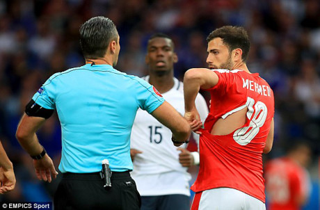 Granit Xhaka bị rách áo tới 2 lần.