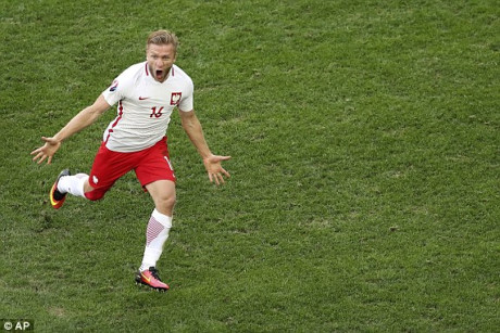 Blaszczykowski ăn mừng sau khi ghi bàn thắng mở tỷ số cho Ba Lan.