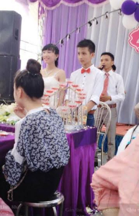 Cô dâu, chú rể còn rất trẻ, ngây thơ, vóc người nhỏ nhắn